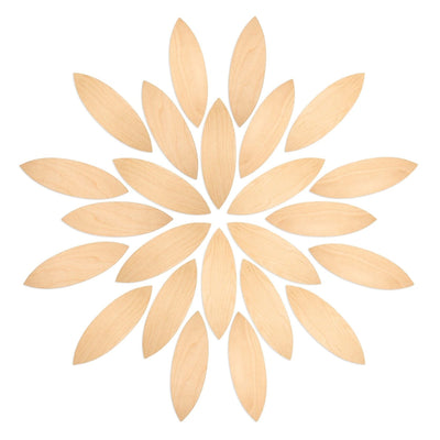 24 flat plywooden pieces in the shape of flower petals (290mm x 90mm x 9mm). Perfect unstructured material that lends itself to different open-ende...