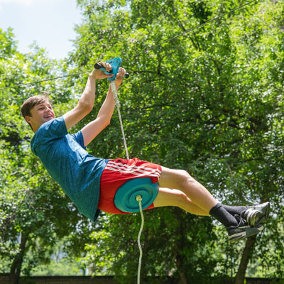Deluxe Zipline Safety Trolley with Quick Setup Kit - KIT CONTAINS: 91.44m Steel Hot Dipped Galvanized Cable with tree Protection; Patent Pending In...