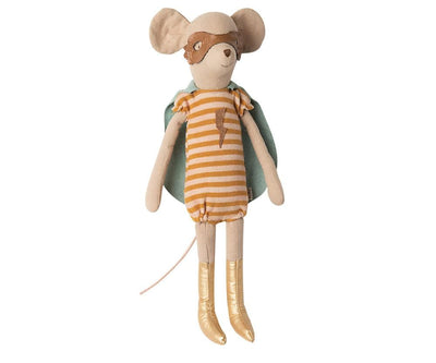 The popular Maileg Mouse dressed as a superhero is ready to fly home to their new best friend! This heroic mouse comes with an adorable blue cape, ...