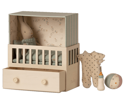 This sweet playful set contains a micro rabbit, baby room box, baby suit, ball and a baby bottle. Everything you need for the perfect play and stor...