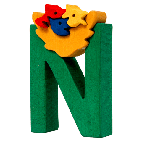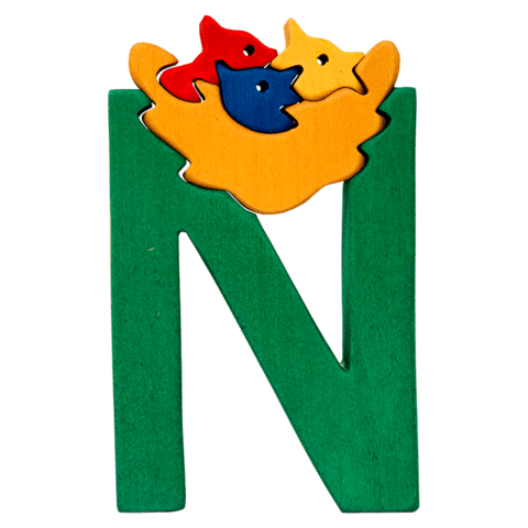 N is for Nest wooden alphabet puzzle Brand: Fauna Age Group: preschool 3 to 6