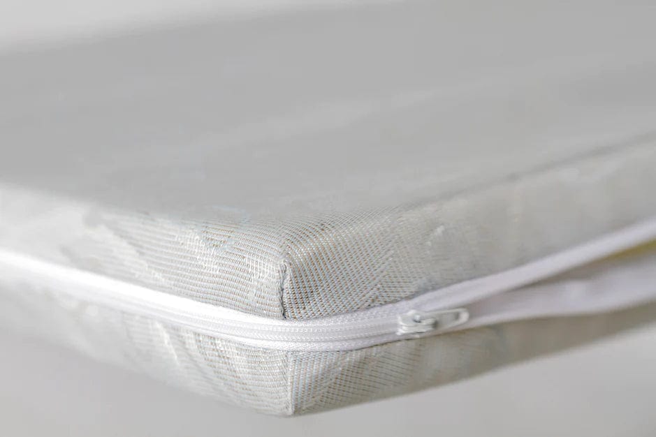 Cot mattress with removable cover fabric. Structure in expanded resin and easy to sanitize with 30? water washing.