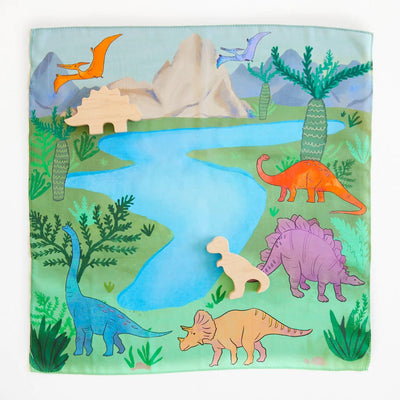 Dinosaur Playmaps are 21x21-inch squares made from gorgeous, heavyweight (8 momme) 100% pure mulberry silk, hand-painted, and then printed with non...