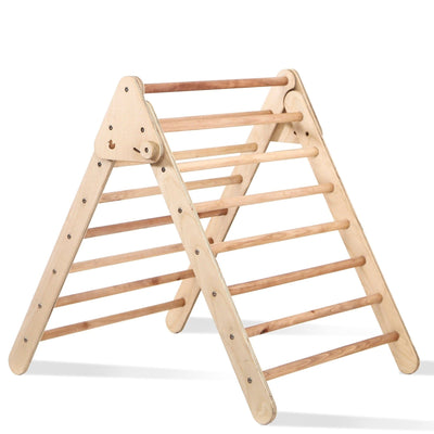 View full detailsPikler triangles, also known as climbing triangles or triangle climbers, are climbing structures for children first developed by Hungarian pediatrician Emmi Pikler. They are typically made of wood and consist of two triangular sides with rungs or steps in between, allowing children to climb, crawl, and play.
