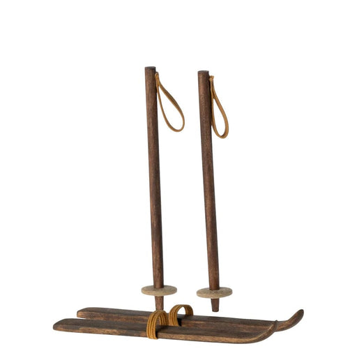 Your Maileg mum and dad mouse will enjoy a day on the slopes with this miniature wooden skiing set. The elastic band makes the skis and poles easy ...