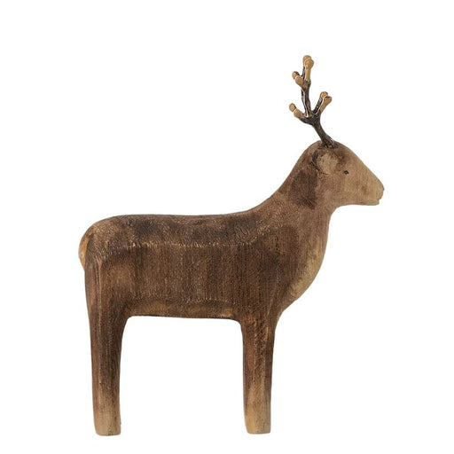 This wooden decoration is hand carved and the antlers are metal. It is hand painted, therefore each one will be unique. Measures 16.5cm (H) x 13.5c...