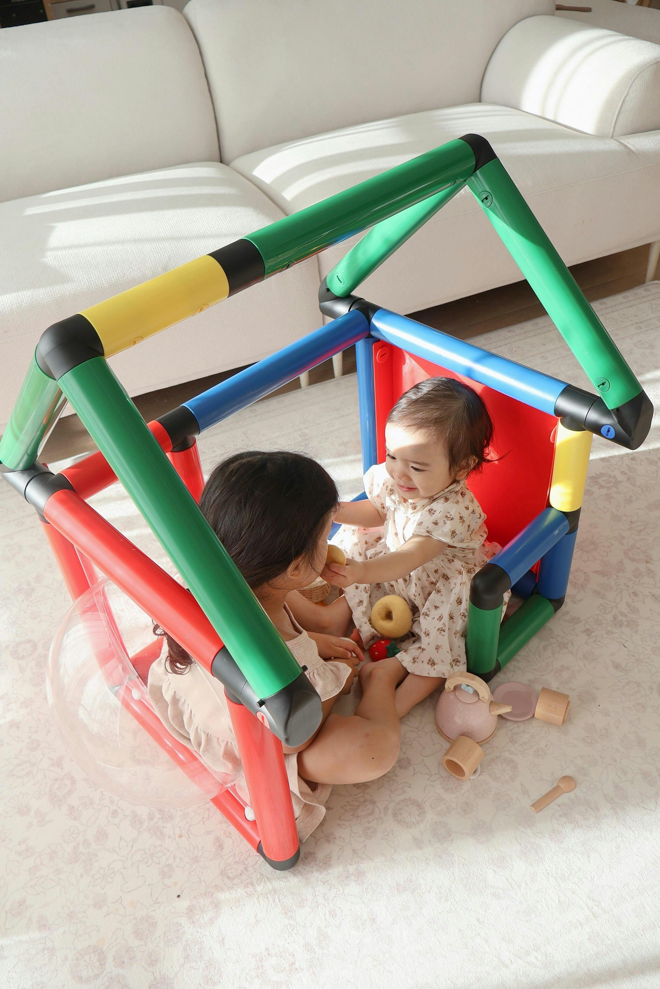 The Starter Playset is easy to assemble, with 116 parts and 24 possible designs that can be set up virtually anywhere. It can transform effortlessly from a climbing pyramid to a playhouse to a lookout tower, without the need for tools, blueprints, or trips to the hardware store. The included kit contains everything needed for hours of fun.