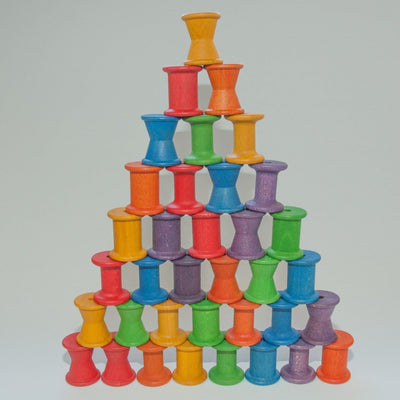 This Grapat set of 36 wooden spools in rainbow colours allows for the development of a logical-mathematical and motor skills. These spools can be s...