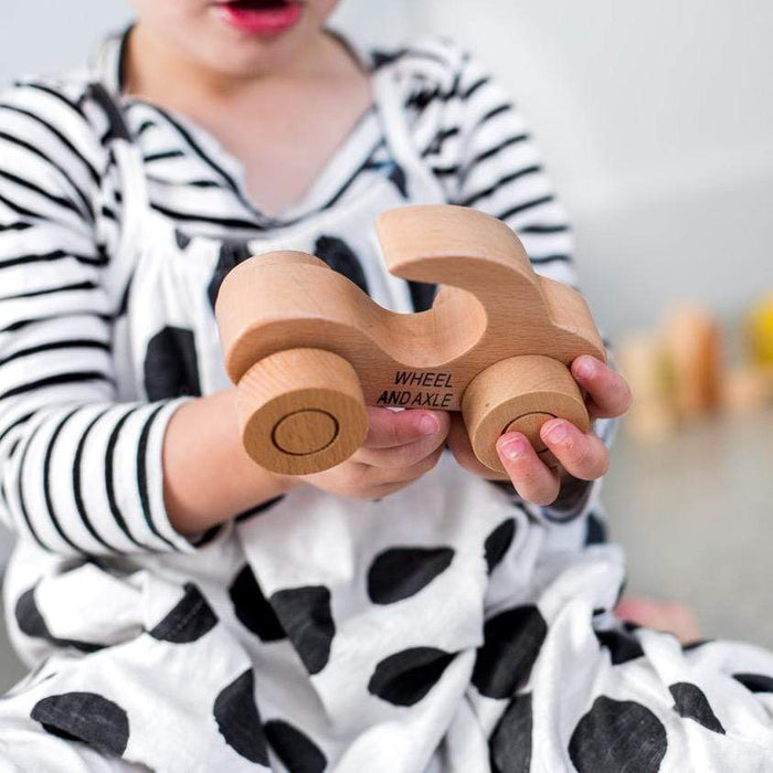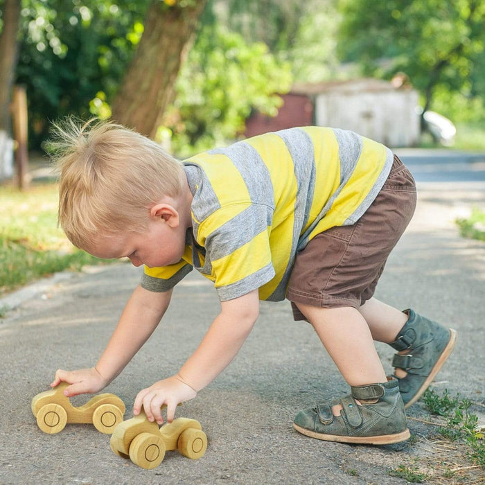 Perfectly designed with little hands in mind, the handle helps develop eye and hand coordination while having some rolling fun. This sturdy wooden car is designed to inspire children’s imaginative play and encourage exploration of the world around them.