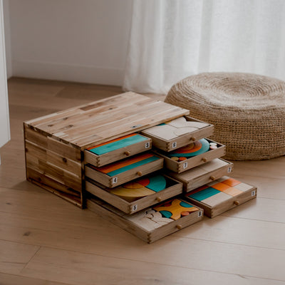 This block cabinet set serves not only kindergartens and childcare centres but also family daycares. It includes 8 trays containing 100 pieces of b...