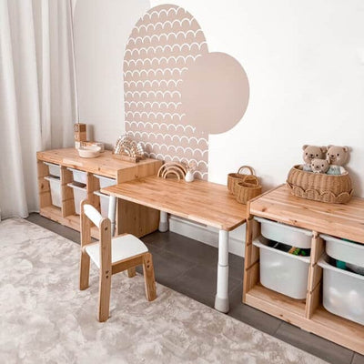 My Duckling Montessori Kids Height Adjustable Table With One Wooden Chair is a versatile and durable set designed to grow with your child. With a s...