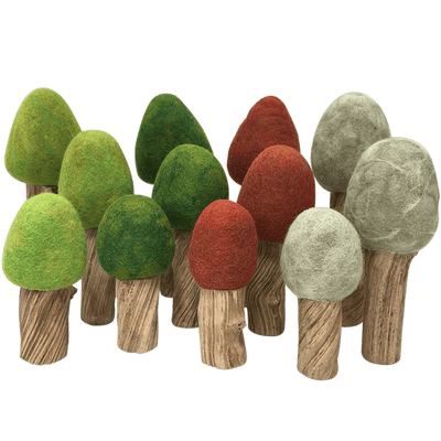 4 Seasons Trees by Papoose Toys These beautiful tactile wooden and felt trees feature a wooden trunk. Each tree trunk is made from real wood and fe...