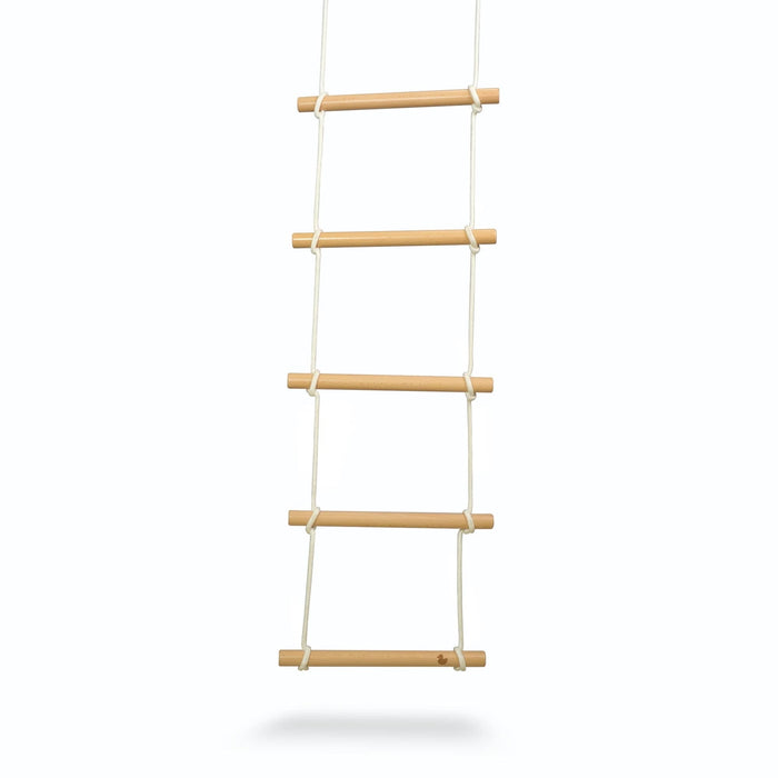It is crafted from beechwood, birchwood and rope, our Climbing Ladder is the perfect addition to your child's play area. It pairs beautifully with our Kids Disc Swinging and Trapeze with Rings. Lightweight and easy to assemble, it's also convenient to store. Designed with wooden rope locks, carabiners, and nylon straps for safety, always ensure the ladder is secure before use. While it's suitable for outdoor play, remember to store it indoors after use and never leave your child unattended while playing.