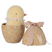 A sweet, soft plush chicken with a vintage cotton collar around the neck, packed in a metal egg in a beautiful print with a big bow on top - a perfect gift for children. Measures H18cm x W12cm.