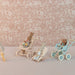 This stroller is perfect for mouse families with twins or triplets. The seat can be positioned both ways depending on whether the babies like to look Mum & Dad, or are ready to look out and discover the world. Measures 11cm (L) x 8.5cm (W) x 9.5cm (H).