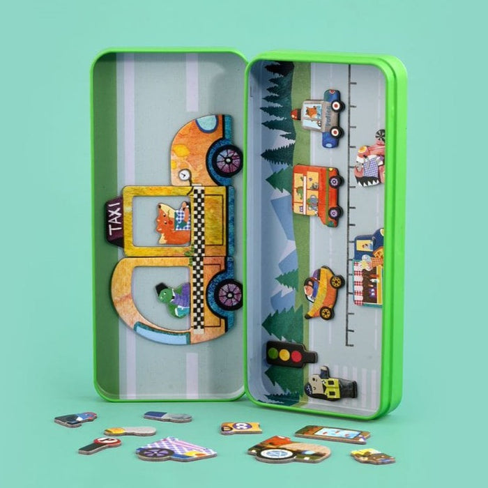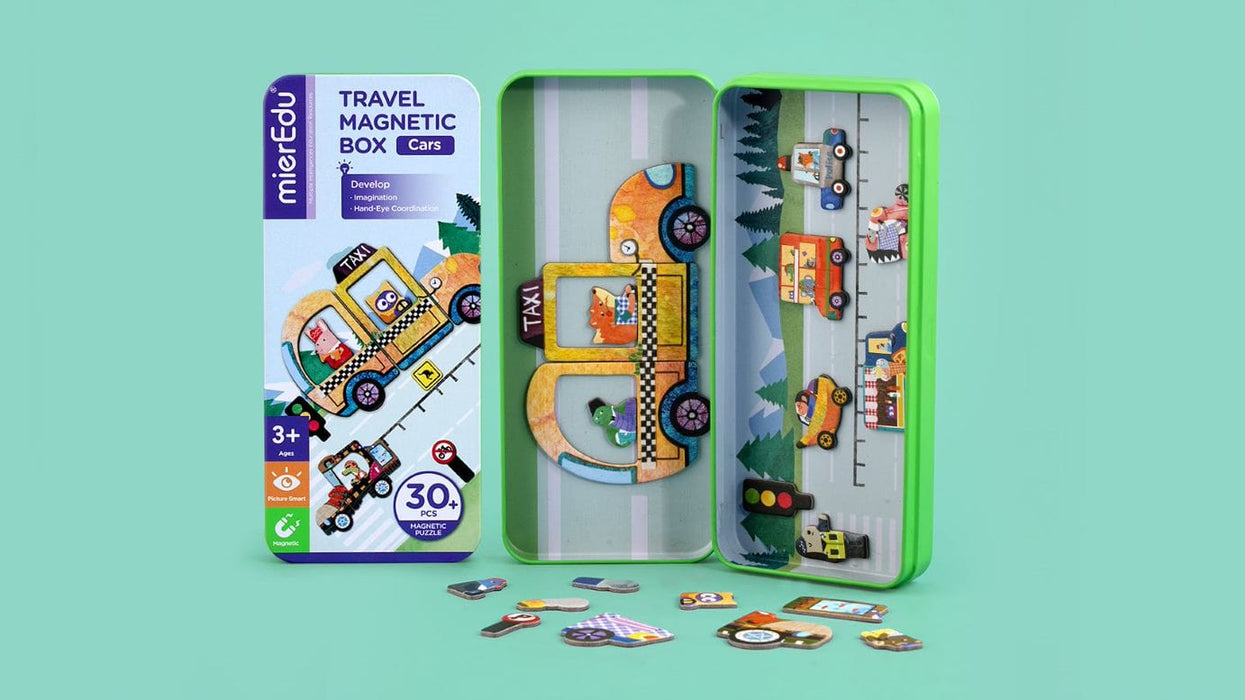 This magnetic box is based around children's favourite vehicles, including two scenes and over 30 magnetic pieces. It integrates different cars with exquisite magnetic pieces to help develop imagination, concentration and hand-eye coordination.