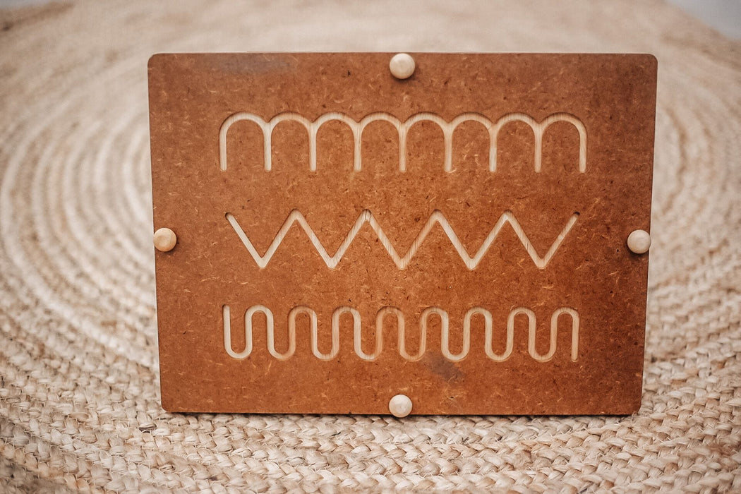 Our First writing pad is the perfect addition to encourage and build children with pre-writing. Each writing pad comes with one board which encourages straight lines, curves and patterns, this is removable to place paper underneath and secured by 4 wooden nuts.
