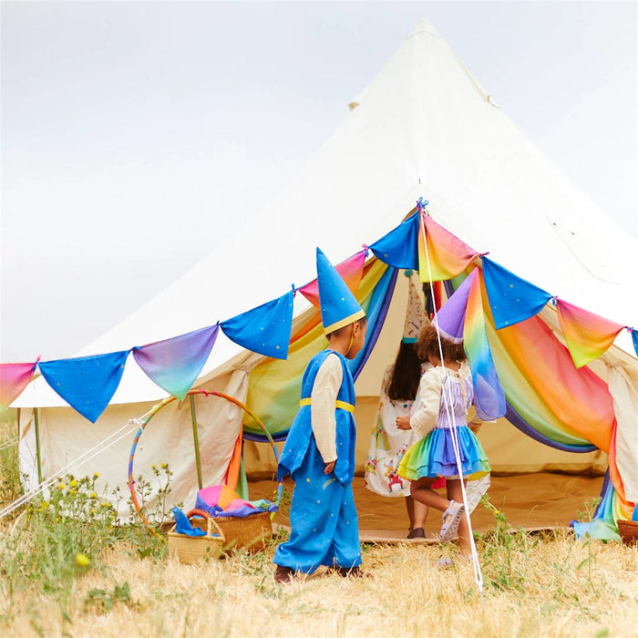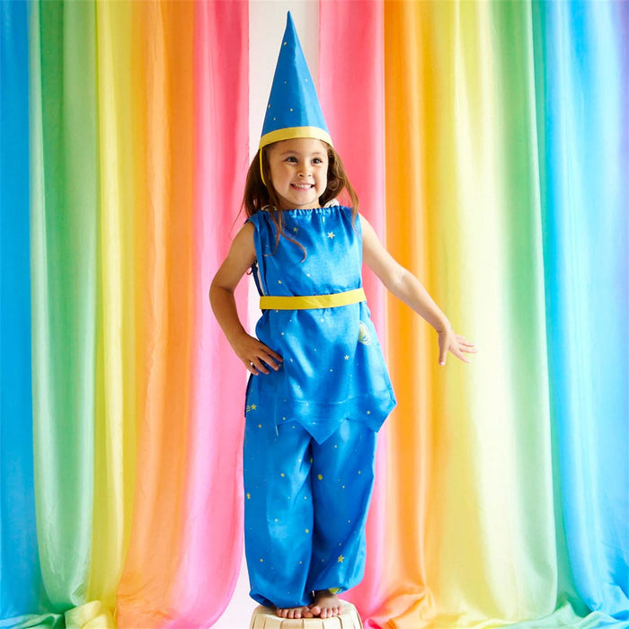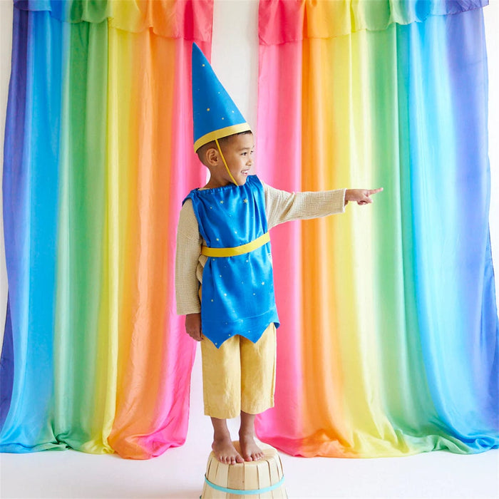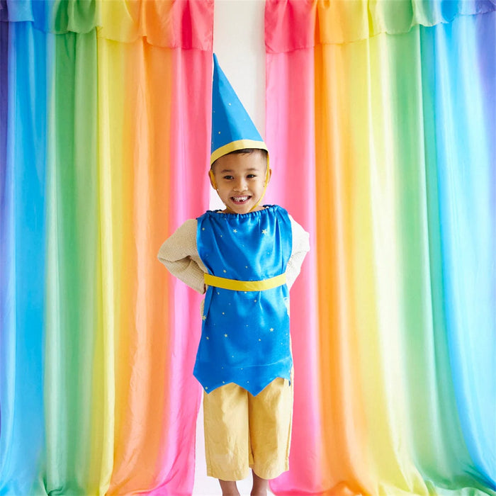 Children's imaginations will come to life with this Star Circus Tunic! Made from luminously textured jacquard silk, this eco friendly costume is comfortable for little ones with sensory needs and perfect for imaginative play and pretend as a circus performer, jester, and so much more!