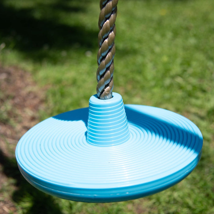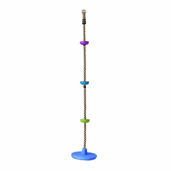 CLIMBING ROPE AND SWING BASE COMBO. The sturdy solid base assists kids in climbing up the rope more easily, compared to a smaller climbing hold on the bottom. It can also be used as a swing seat, allowing kids to sit down and swing back and forth. The 3 climbing holds add to the fun and provide a challenging experience on the rope. It can be easily attached to a Ninja or Swingset Lines, play structures or even tree branches.