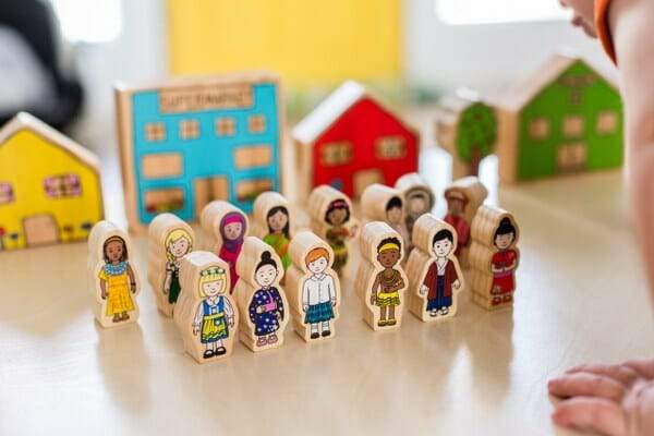 This brightly colored wooden people set represents cultures all over the World. Made up of 18 diverse cultures including African, Scottish, Indian and Russian to name only a few, these high-quality wooden people are perfect for role-playing and storytelling as well as encouraging creative play whilst learning about different cultures from all around the World. A great addition to any playset as children learn acceptance of different cultures, languages, families, appearances and lifestyles. The beautifully illustrated images are printed using non-toxic heat transfer technology and sealed with a clear matte varnish to ensure they look as good as the day you buy it!