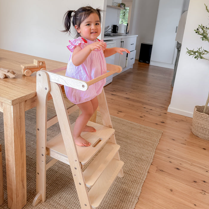 Multi functional: Our learning tower is designed to support a wide range of activities. It serves as a secure platform for children to participate in cooking, baking, crafting, and other hands-on learning experiences. It fosters independence, creativity, and cognitive development.
